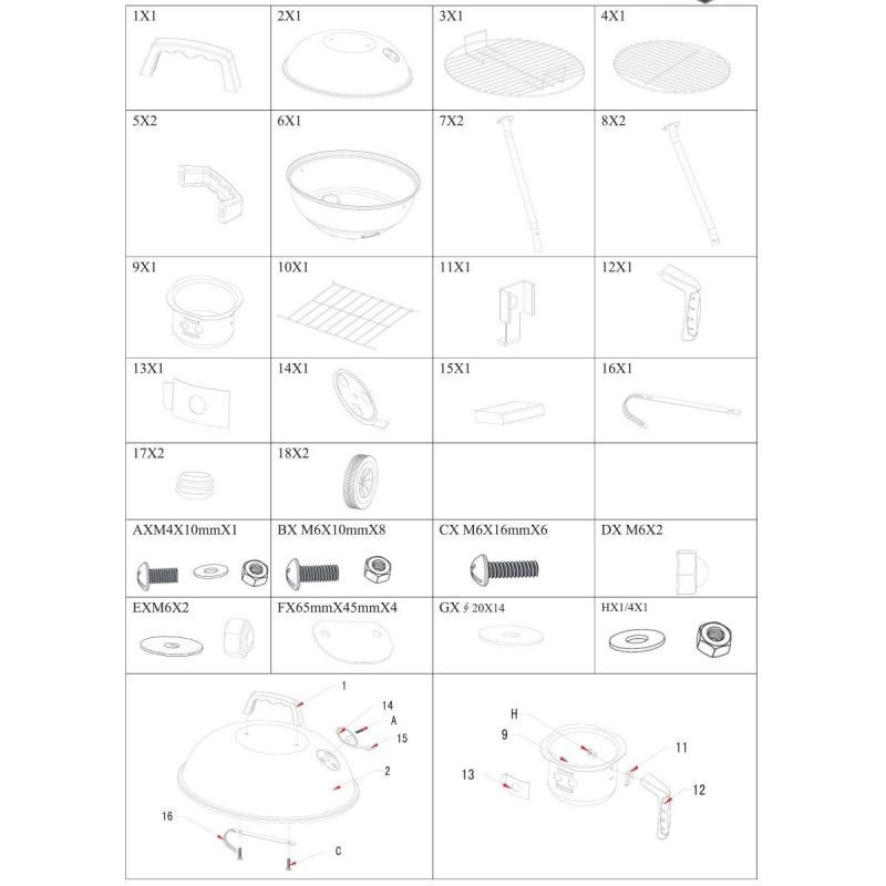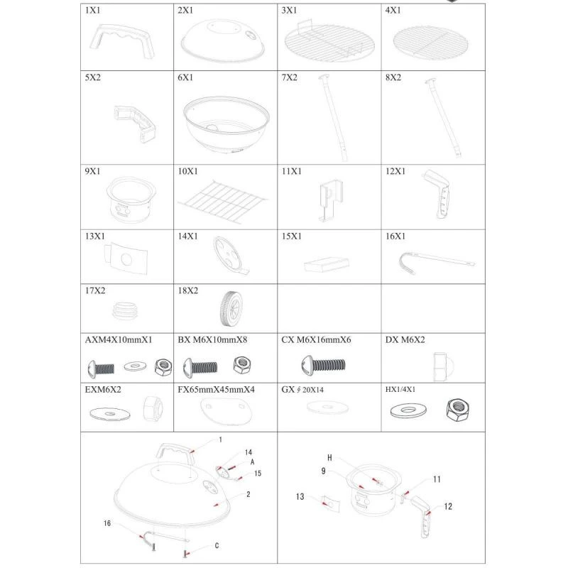 Rozměry grilu ve smontovaném stavu: výška 83 cm, šířka 48,5 cm, hloubka 48,5 cm