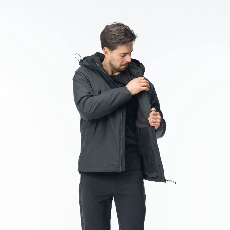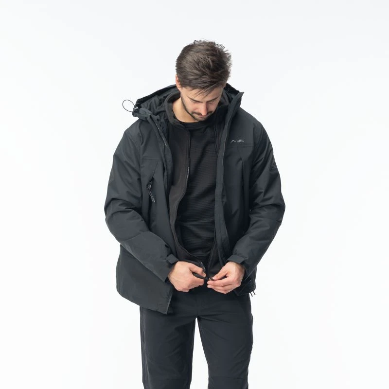 Męska kurtka trekkingowa FORCOZ 3IN1 marki Elbrus składa się z kurtki membranowej oraz polaru. Kurtka zewnętrzna posiada membranę ActivGuard Plus® o wodoodporności 10 000 mm H2O oraz oddychalności 8000 g/m²/24 h. Klejone szwy uszczelniają przeszycia, chroniąc je przed przemoknięciem. Ściągacze w talii oraz regulowane mankiety dają możliwość indywidualnego dopasowania kurtki do sylwetki. Tkanina kurtki została wzmocniona dodatkowym włóknem, dzięki temu jest bardziej odporna na przetarcia. Model FORCOZ 3IN1 posiada wypinany polar, dzięki temu prezentowany model jest uniwersalny i bardziej funkcjonalny. Regulowany, odpinany kaptur osłoni przed deszczem i powiewami wiatru. Kurtka FORCOZ 3IN1 sprawdzi się podczas różnych aktywności oraz różnych warunków atmosferycznych.