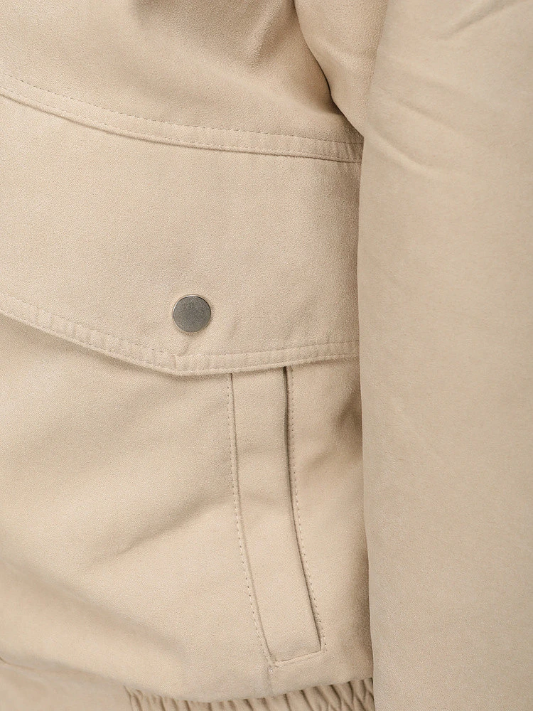 Kurtka o krótkiej długości i klasycznym fasonie sprawdza się jako praktyczne okrycie na sezon przejściowy. Wykonana z imitacji zamszu, łączy estetyczne wykończenie z wygodą noszenia. Wysoki kołnierz oraz regulowany dół nadają jej uporządkowaną formę i zwiększają ochronę przed chłodem. Kieszenie podnoszą funkcjonalność podczas codziennego użytkowania.