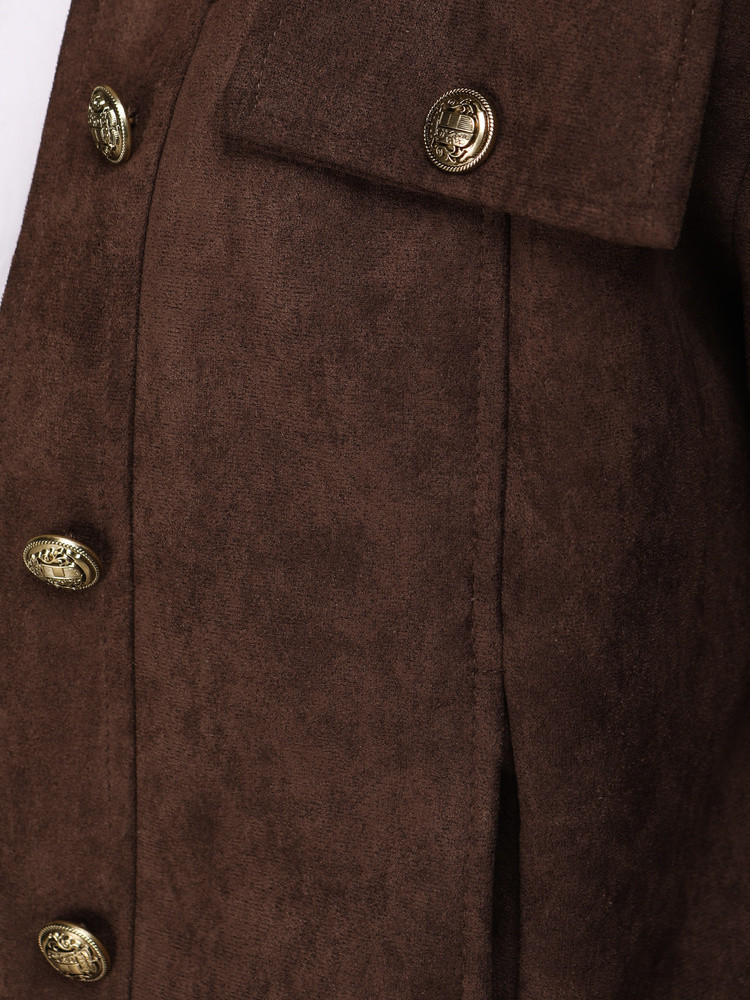 Materiał imitujący zamsz jest przyjemny w dotyku i nadaje kurtce miękką, delikatną strukturę.