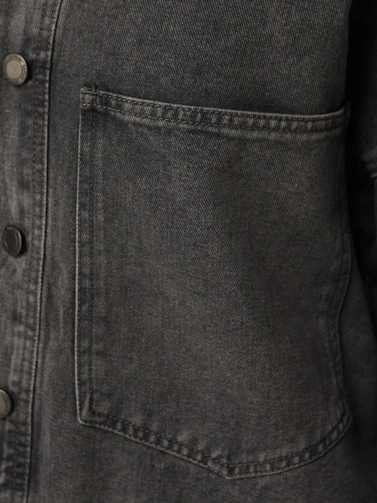 Kurtka jeansowa o luźnym fasonie sprawdza się jako okrycie wierzchnie na sezon przejściowy. Konstrukcja z kołnierzem i obniżoną linią ramion ułatwia budowanie warstw z T-shirtem lub swetrem. Zapięcie na guziki pozwala szybko dopasować stopień osłony przed wiatrem i stylizację. Dwie kieszenie zewnętrzne pomagają mieć drobiazgi pod ręką.