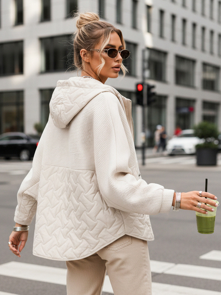 Kurtka damska oversize z kapturem ecru model 22010062 - FashionStreet