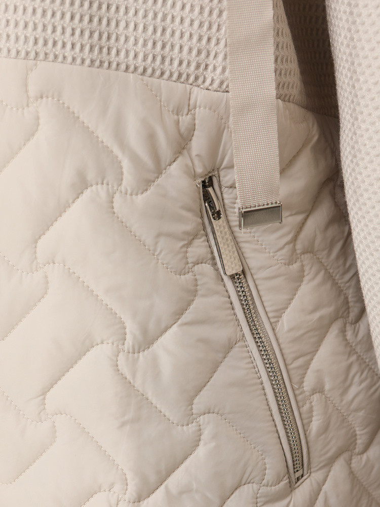 Przejściowa kurtka o kroju oversize łączy sportowy charakter z nowoczesnym designem. Połączenie pikowanego dołu z dzianinową górą nadaje jej oryginalnego wyglądu. Luźniejszy fason zapewnia swobodę ruchów i komfort noszenia w zmiennych warunkach pogodowych.