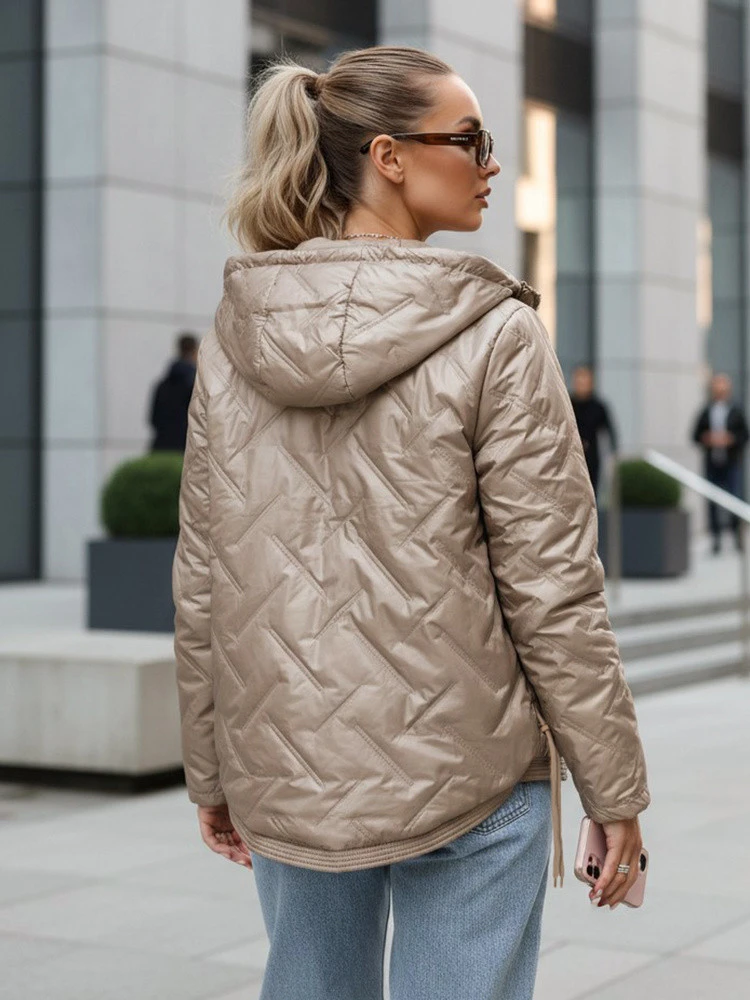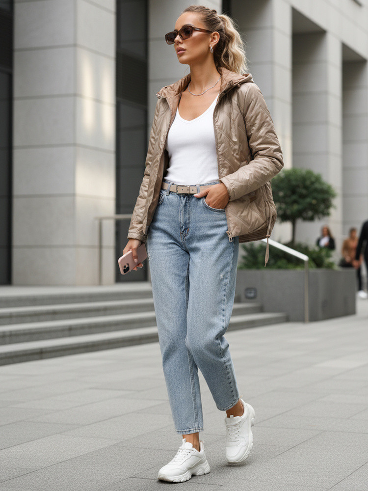 Kurtka damska pikowana lekko ocieplana z kapturem taupe TY5633