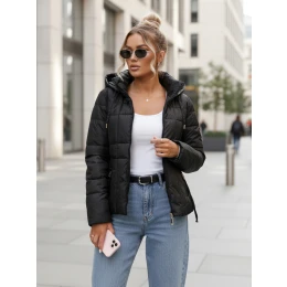 Kurtka damska pikowana z kapturem czarna model 22010056 - FashionStreet
