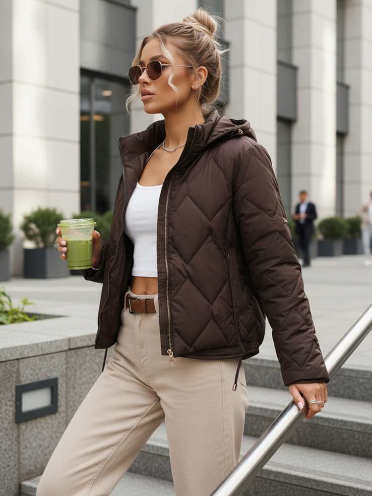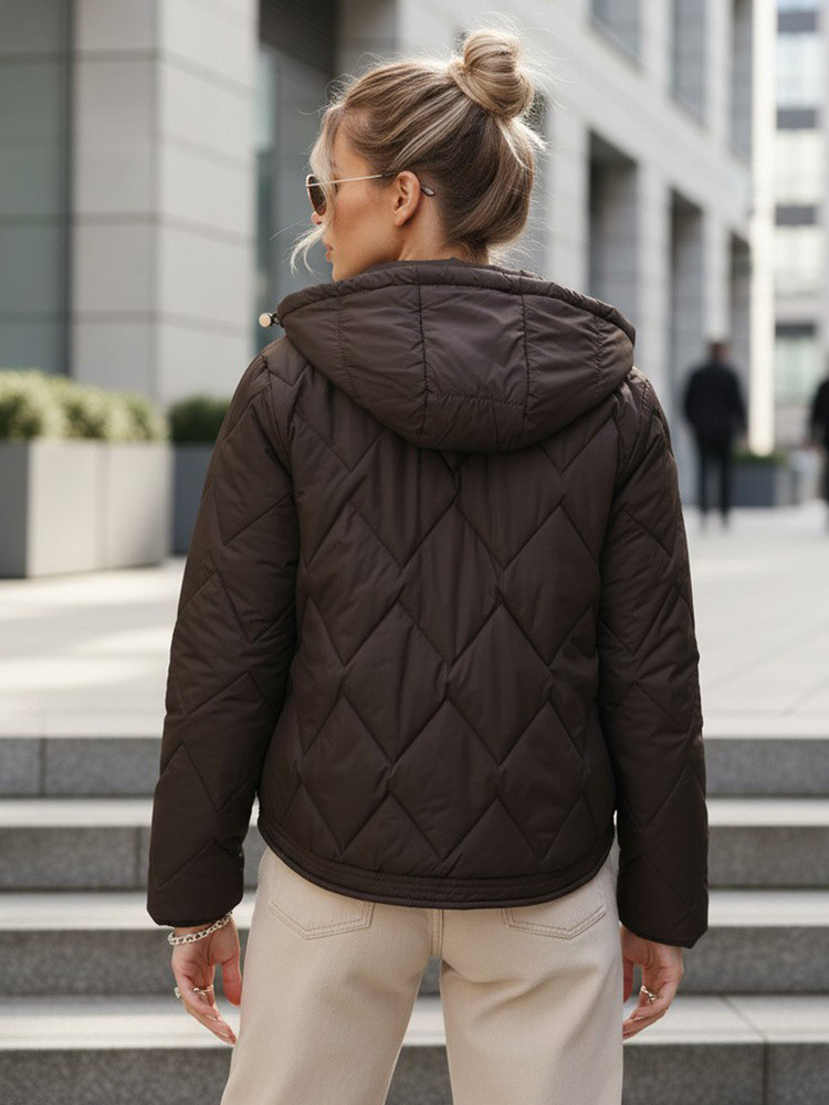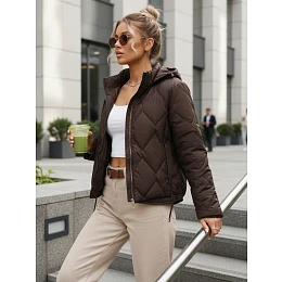 Kurtka damska przejściowa pikowana z kapturem brązowa model 22102043 - FashionStreet