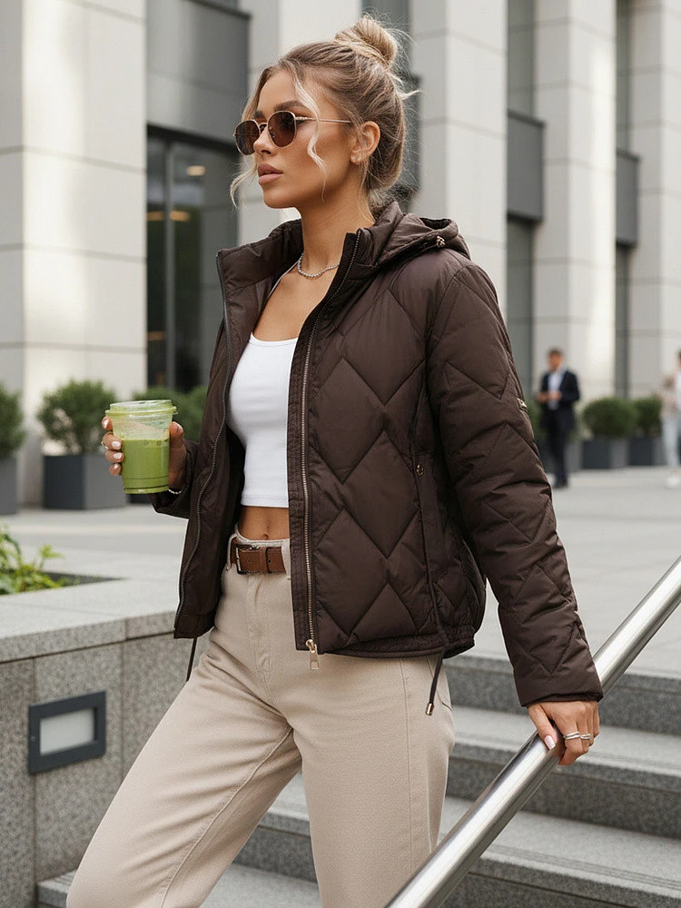 Pikowane wykończenie w połączeniu z krótkim krojem ułatwia stylizowanie jej z ubraniami o wyższym stanie. Odpinany kaptur zwiększa funkcjonalność, pozwalając dopasować ją do różnych warunków pogodowych i okazji.