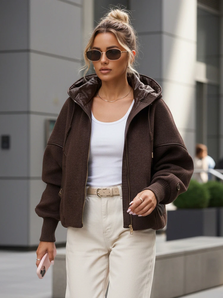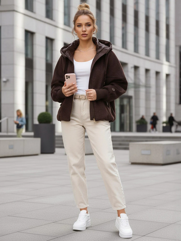 Luźniejszy krój ułatwia budowanie stylizacji warstwowych, dzięki czemu kurtka pasuje zarówno do lekkiego topu, jak i cieplejszej bluzy. Funkcjonalne detale zwiększają komfort podczas codziennego użytkowania.