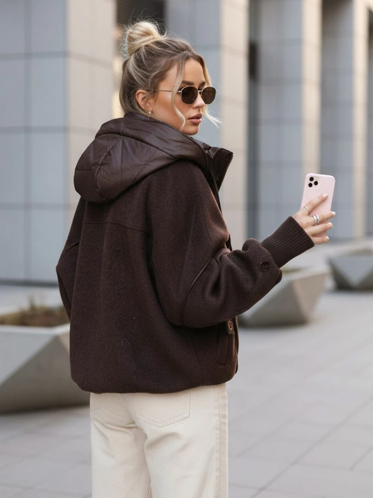 Kurtka damska przejściowa z kapturem brązowa model 22035968 - FashionStreet