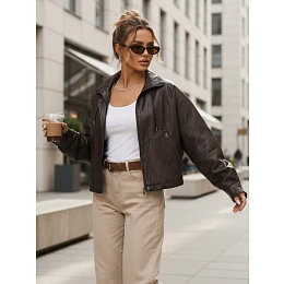 Kurtka damska skórzana oversize brązowa model 22084536 - FashionStreet