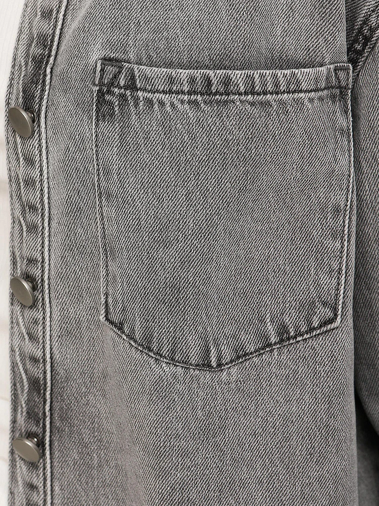 Kurtka koszulowa łączy swobodny krój z praktycznym wykończeniem na co dzień. Denimowa tkanina dobrze sprawdza się w stylizacjach miejskich i casualowych. Luźniejszy fason zapewnia komfort noszenia oraz pozwala zestawiać ją z topem, T-shirtem lub cienką bluzą. Metalowe napy ułatwiają szybkie zakładanie i regulowanie sposobu noszenia.
