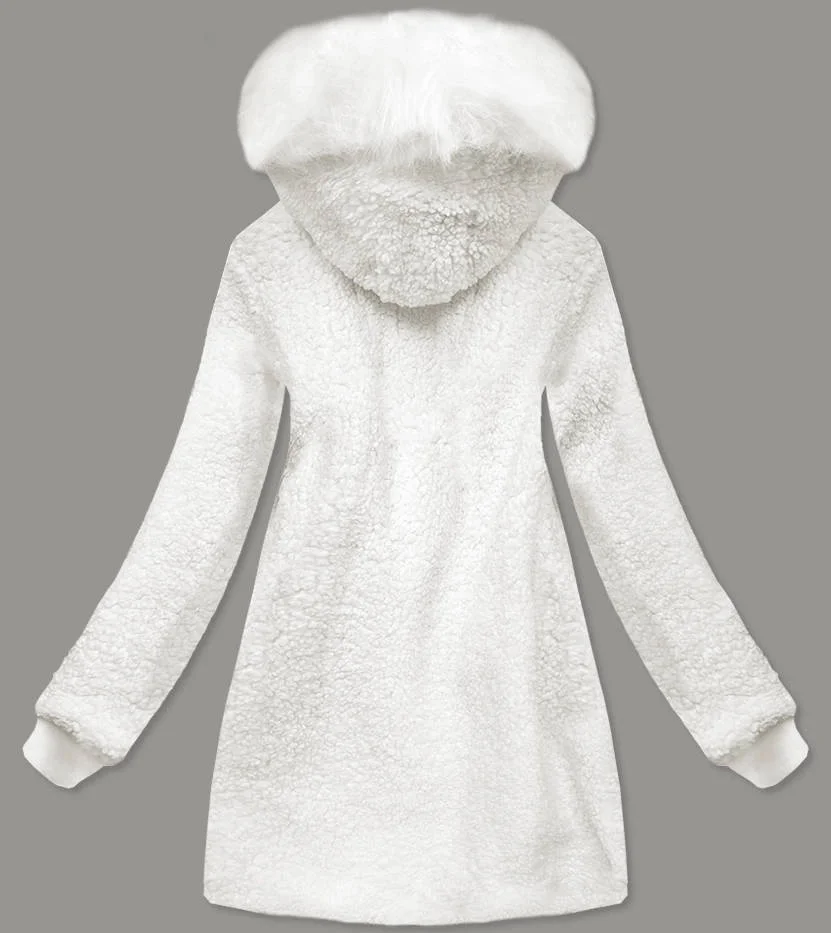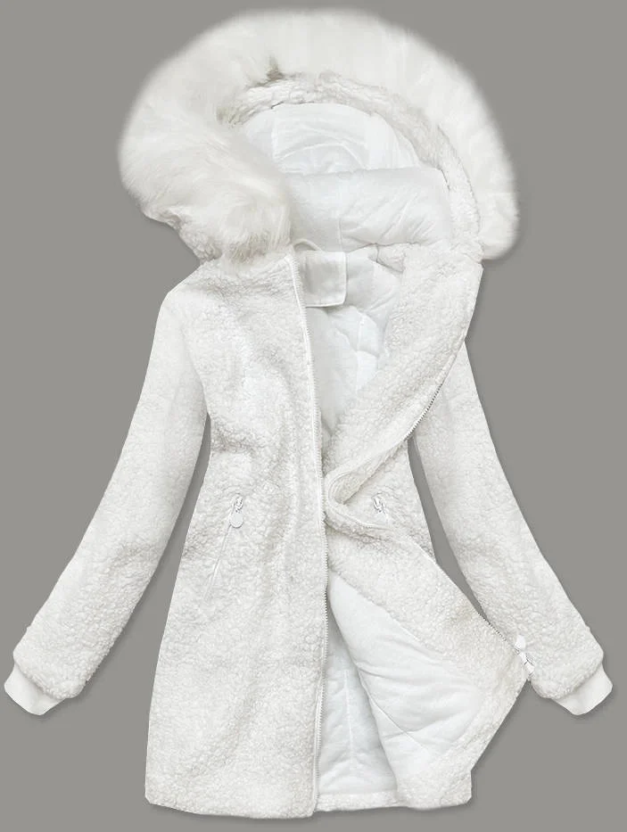 KURTKA DAMSKA Z KAPTUREM BARANEK BIAŁA (H-1030-82)