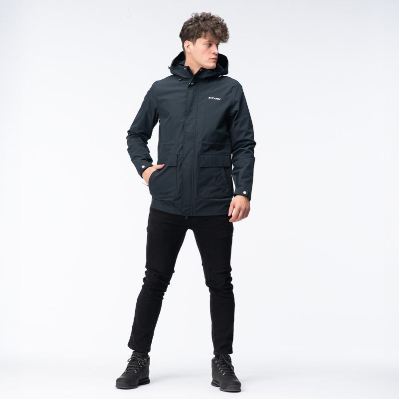 Męska kurtka VERLO marki Fitanu to uniwersalna, praktyczna kurtka przejściowa. Posiada membranę ActivGuard Pro® o wodoodporności 10 000 mm H2O oraz oddychalności 10 000 g/m²/24h. Naniesiona na materiał zewnętrzny powłoka DWR zwiększa jej odporność na przemakanie. Klejone szwy uszczelniają przeszycia chroniąc je przed przemoknięciem. Kurtka VERLO posiada zintegrowany, regulowany kaptur. Ściągacze w talii, regulowane mankiety dają możliwość indywidualnego dopasowania do sylwetki. Dzięki dwukierunkowemu zamkowi YKK® z łatwością wsiądziesz do samochodu, bez konieczności zdejmowania kurtki. Prezentowany model posiada wewnętrzną kieszonkę, tzw. „suchą kieszeń”, w którą schowasz telefon lub portfel oraz kieszonki zewnętrzne.