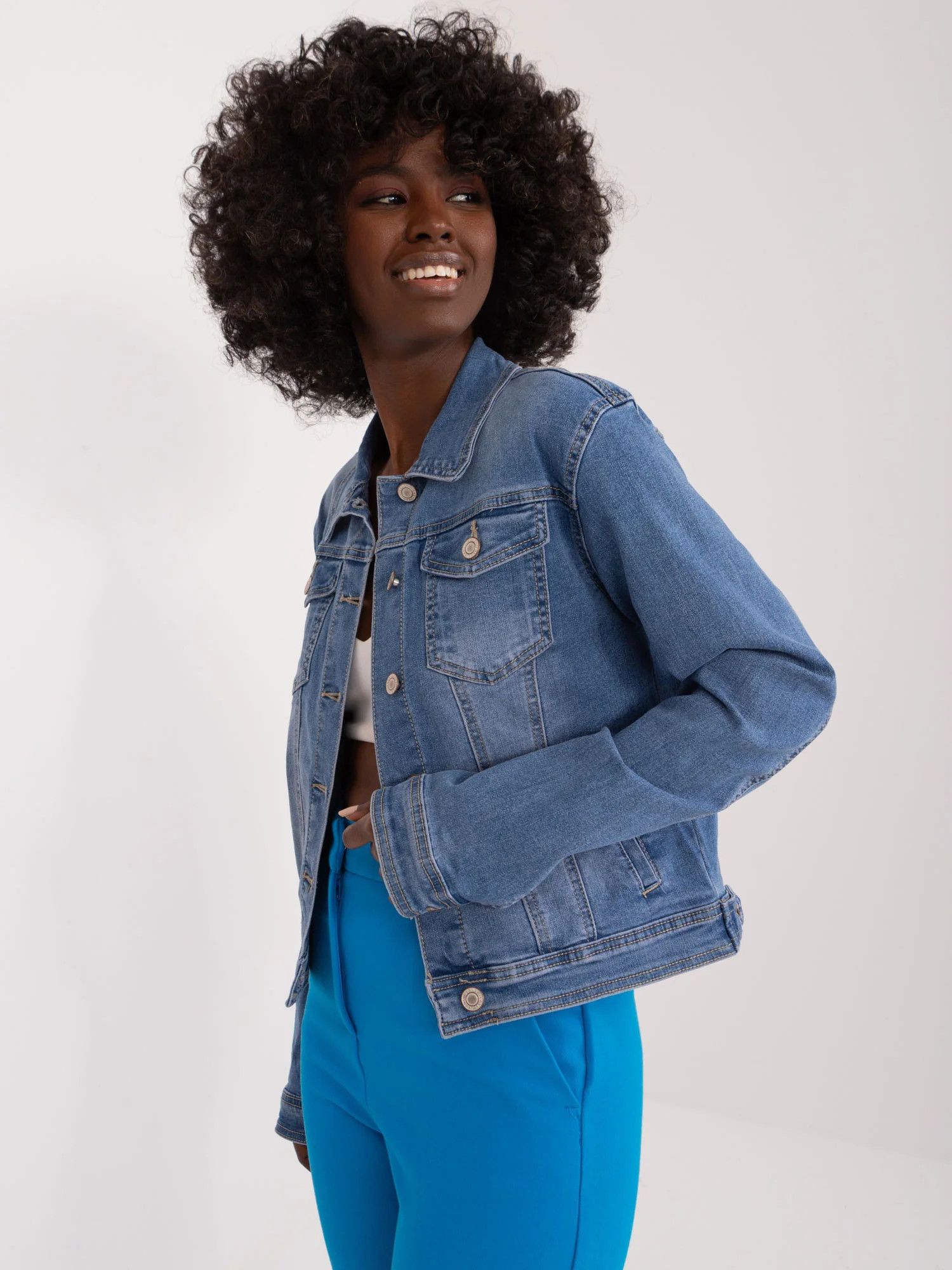 Wymiary kurtki w rozmiarze S mierzone na płasko: szerokość pod pachami - 46 cm, długość rękawa - 62 cm, długość całkowita - 47 cm.