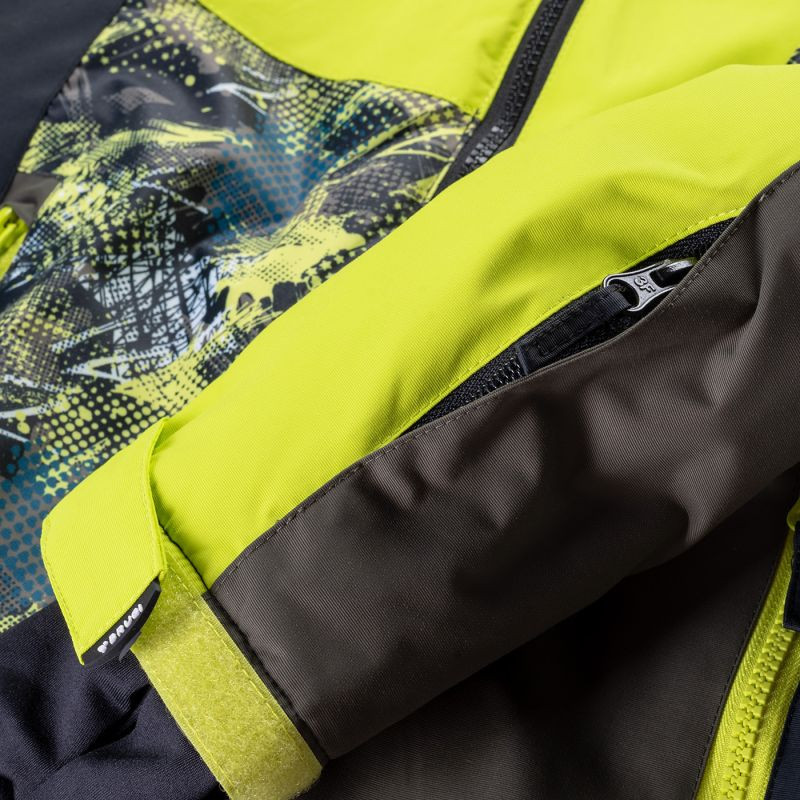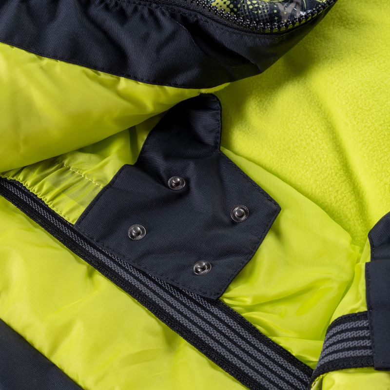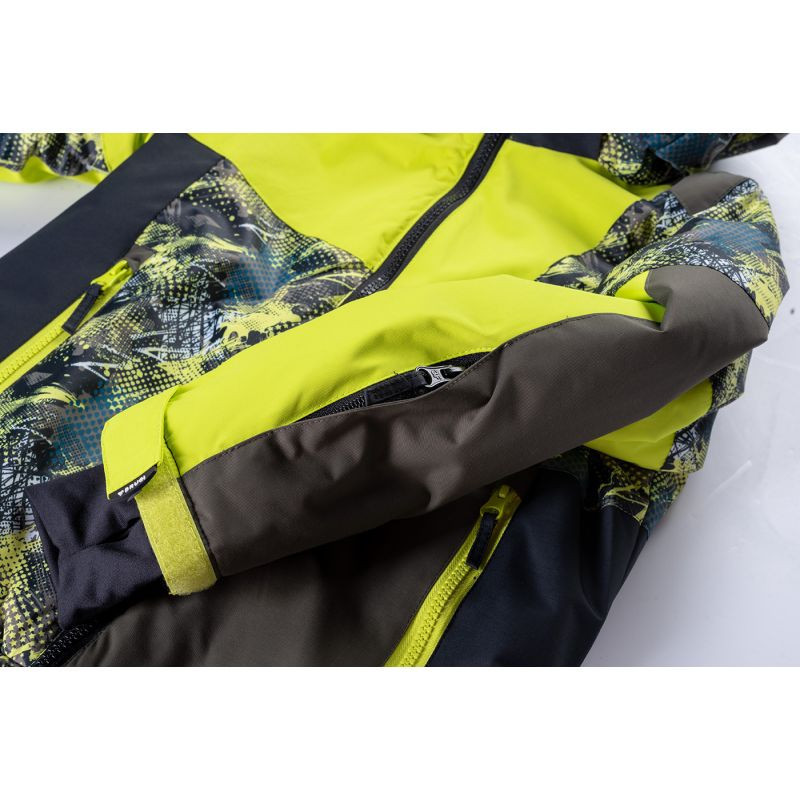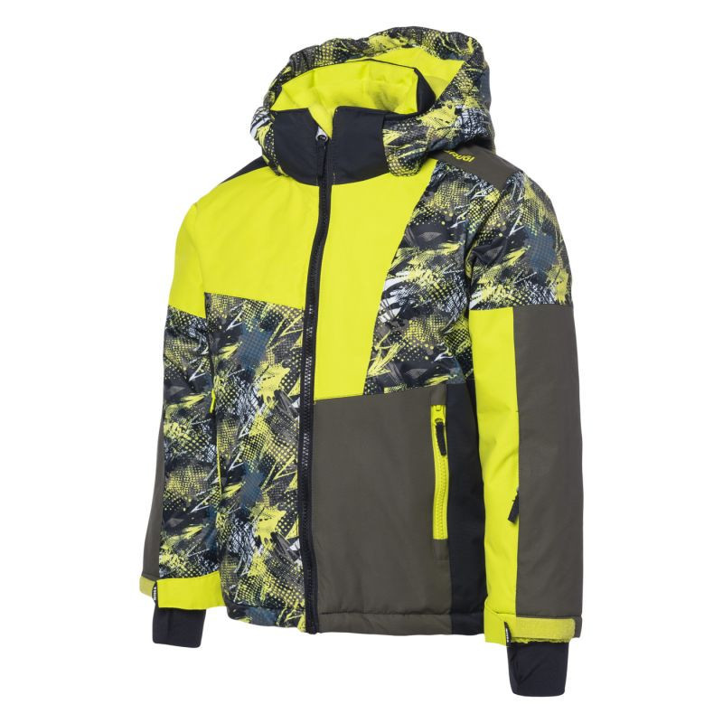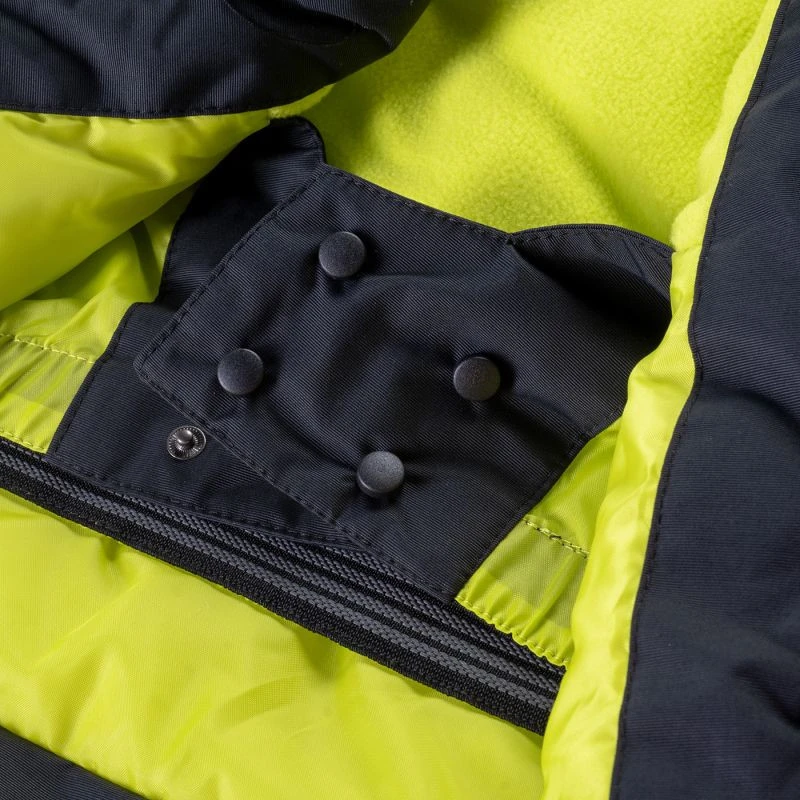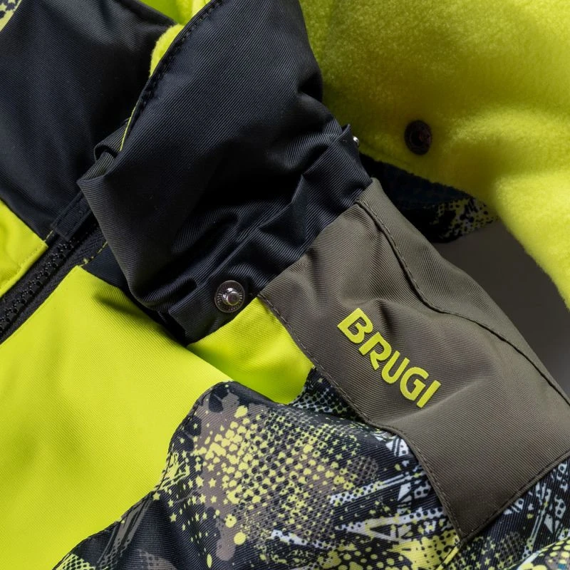 Dziecięca kurtka narciarska 3AK3 marki Brugi posiada membranę o wodoodporności 5000 mm H2O, która umożliwia jazdę przy lekkich opadach. Klejone szwy uszczelniają przeszycia dodatkowo chroniąc kurtkę przed przemoknięciem. Dużym plusem jest kieszonka na skipass, która ułatwi sprawne korzystanie z wyciągu narciarskiego. Wygodny, ocieplony kaptur możesz z łatwością odpiąć. Fartuch przeciwśnieżny chroni przed dostaniem się śniegu pod kurtkę, a także zatrzymuje ciepło wewnątrz. Dodatkowe wykończenie od wewnątrz z mikropolaru podnosi komfort cieplny.
