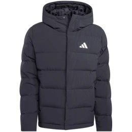 Kurtka męska adidas Helionic czarna JN2099 Męska kurtka adidas tworzy izolację od zimna dzięki naturalnemu wypełnieniu, które zostało zamknięte w poziomych panelach. Regularny krój. Dół ze sznurkiem do regulacji. Klapa przeciwwiatrowa z niewidocznym zapięciem na zatrzaski. Nieodpinany kaptur z elastycznym wycięciem. Zamek na całej długości. Kieszenie na suwak. Izolacja termiczna i wodoodporność zapewniają optymalną ochronę warstw wierzchnich. Climawarm. Dane techniczne:· Warstwa zewnętrzna: 100% poliester z recyklingu· Warstwa wewnętrzna: 100% termoplastyczny poliuretan· Wypełnienie: 80% kaczy puch, 20% pierze (600 Fill Power)