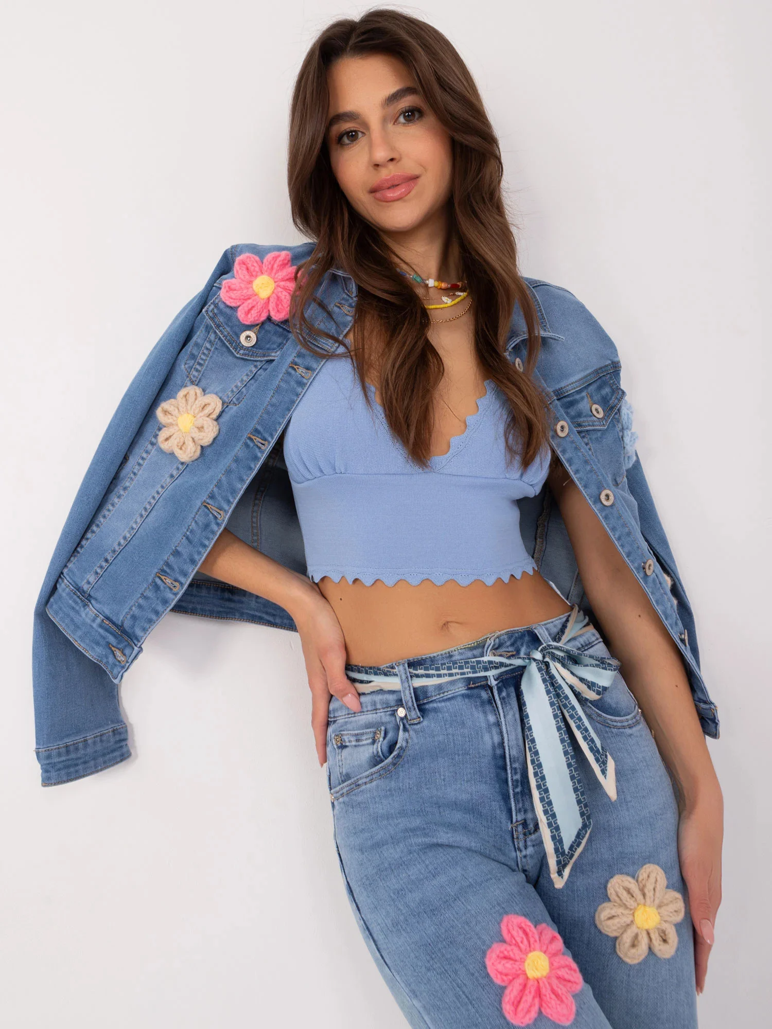 Modelka ma na sobie rozmiar S. Wymiary modelki: wzrost 172 cm, biust 88 cm, talia 63 cm, biodra 92 cm.