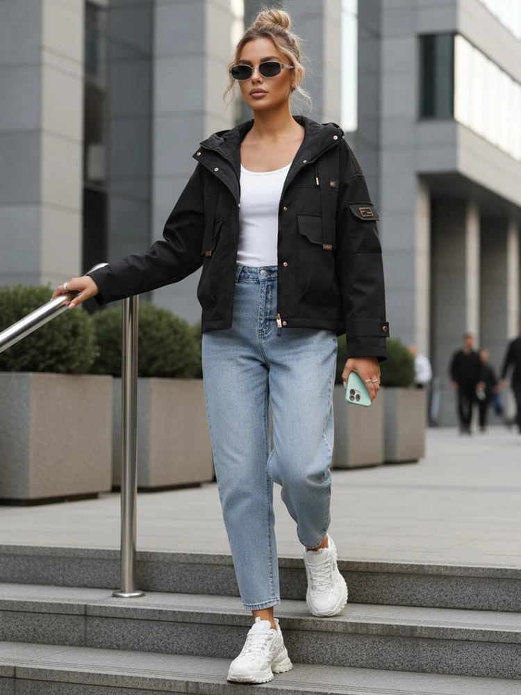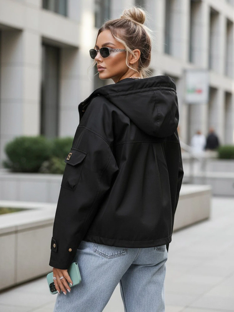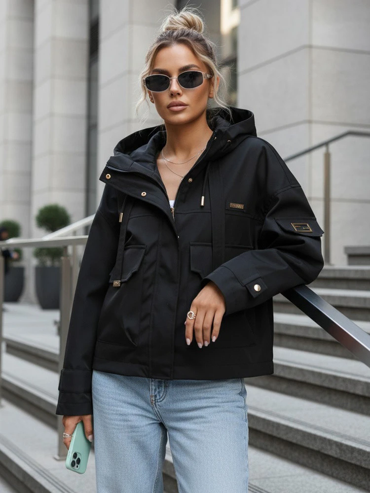 Kurtka przejściowa damska z kapturem i czarna model 22035960 - FashionStreet