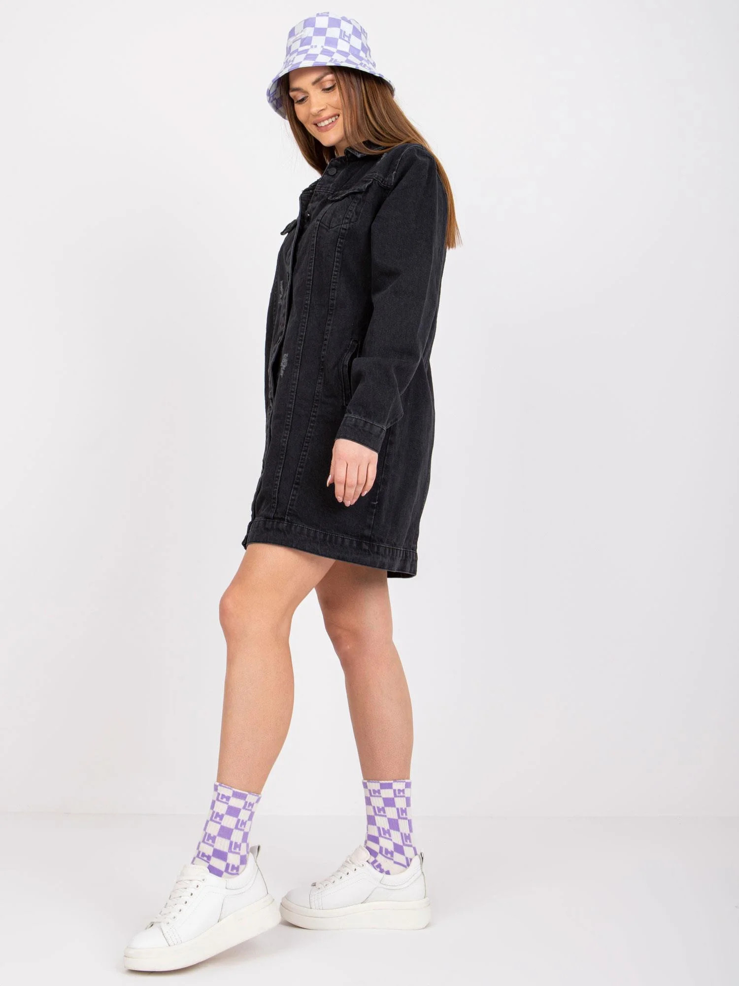 Wymiary kurtki w rozmiarze S mierzone na płasko: szerokość pod pachami - 48 cm, długość rękawa - 63 cm, długość całkowita - 82 cm.