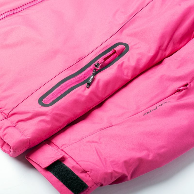 Damska kurtka narciarska 2ALI marki Brugi posiada membraną o wodoodporności 1500 mm H2O oraz oddychalności 1500 g/m²/24h. Wysoki kołnierz oraz odpinany, regulowany kaptur osłonią Cię przed podmuchami wiatru oraz lekkim opadem. Kurtka 2ALI posiada pas przeciwśnieżny, który chroni przed przedostawaniem się śniegu. Kieszonka na skipass umieszczona na rękawie, ułatwi szybkie korzystanie z wyciągu. Ponadto prezentowany model posiada kieszonkę wewnętrzną oraz dwie zewnętrzne kieszenie boczne. Syntetyczne wypełnienie zapewni odpowiedni komfort cieplny podczas jazdy.