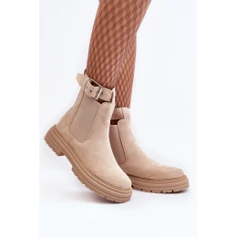 Moderní dámské boty na silnou podrážku a plochém podpatku. Vyrobeno z eko kůže. Na horní části se nachází nastavitelný pásek s kovovou sponou. Model s vysouvacím designem. Vnitřek je zateplený obuvnickou dekou. Špička je zaoblená. Ideální do téměř každého podzimního stylu! Při výběru velikosti se řiďte tabulkou velikostí.