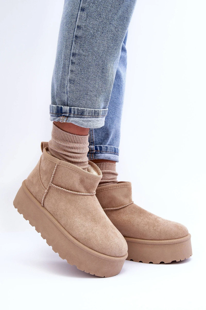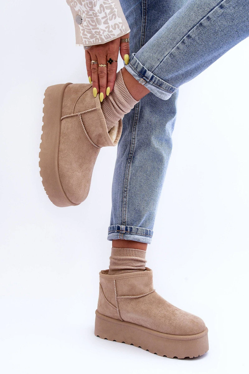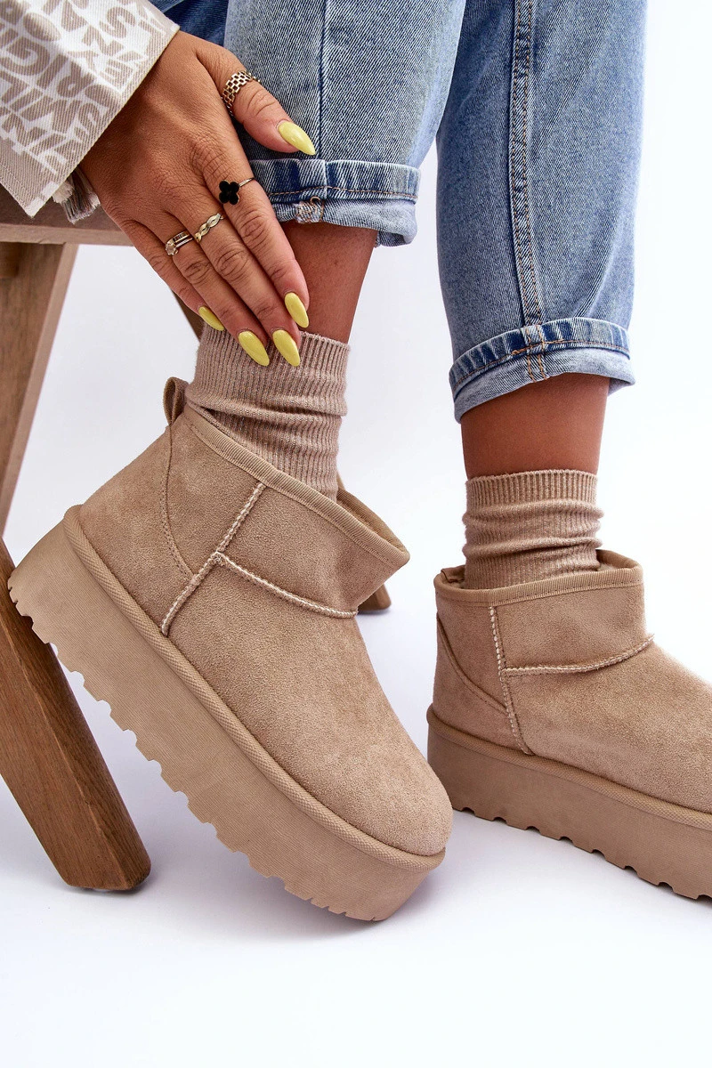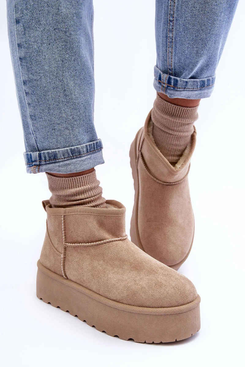 Dámské sněhové boty se skvěle hodí na mrazivé dny. Vyrobené z eko semiše. Vnitřek bot je izolován tlustým ekologickým kožešinou. Tento klasický model lze snadno přizpůsobit mnoha stylům. Boty mají masivní platformu, která dobře izoluje od podkladu. Při výběru velikosti se řiďte tabulkou velikostí.