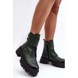 Kůže Dámské Botky Workery Zelené Lemar Anceria