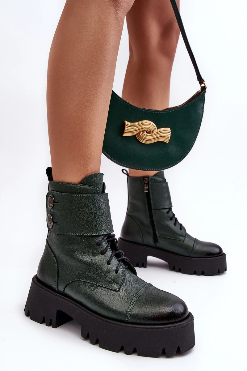 Kůže Dámské Botky Workery Zelené Lemar model 21637681 - Boto