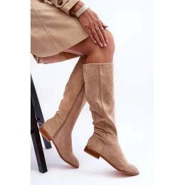 Kůže Kozačky S Plochou Podpatek Bežové Eelin