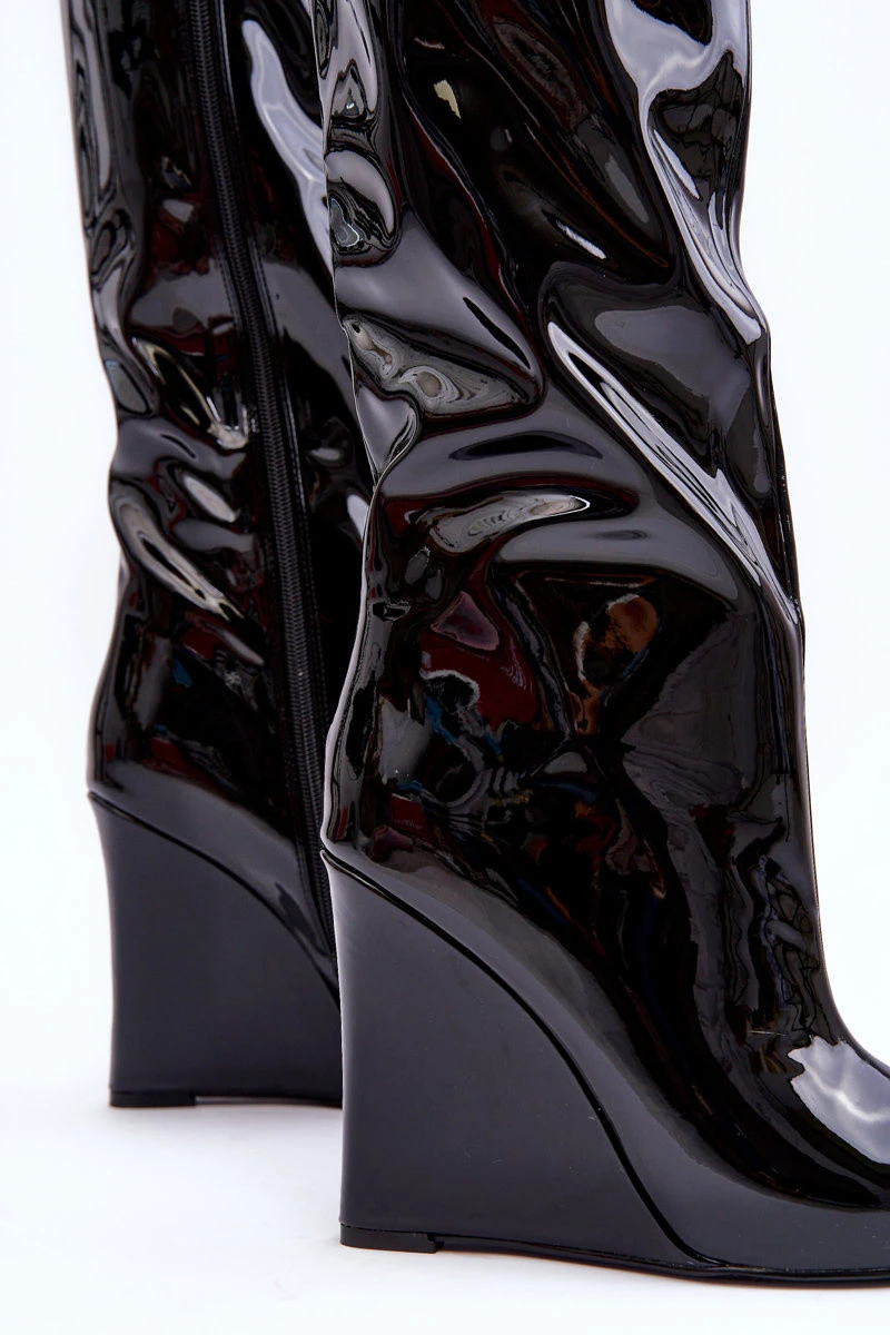 Kůže Kozaky Na Koturnu Černé Delinn