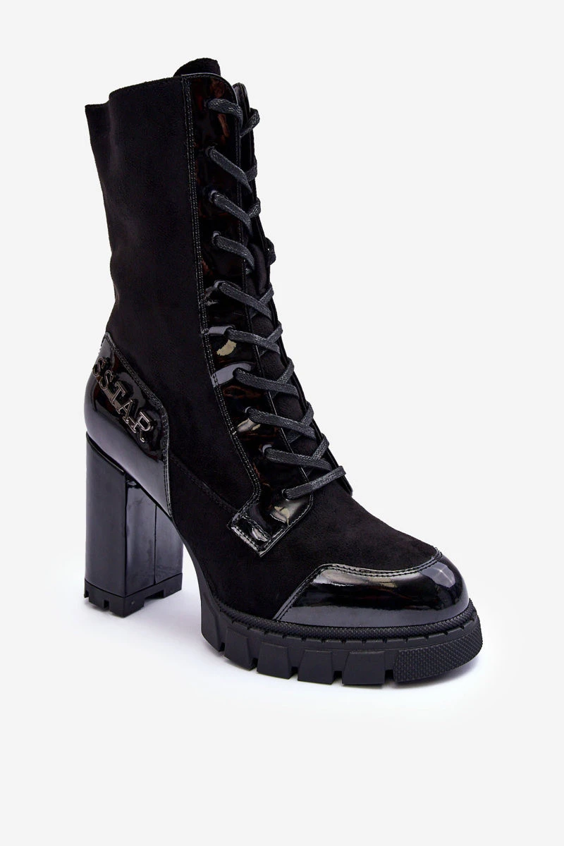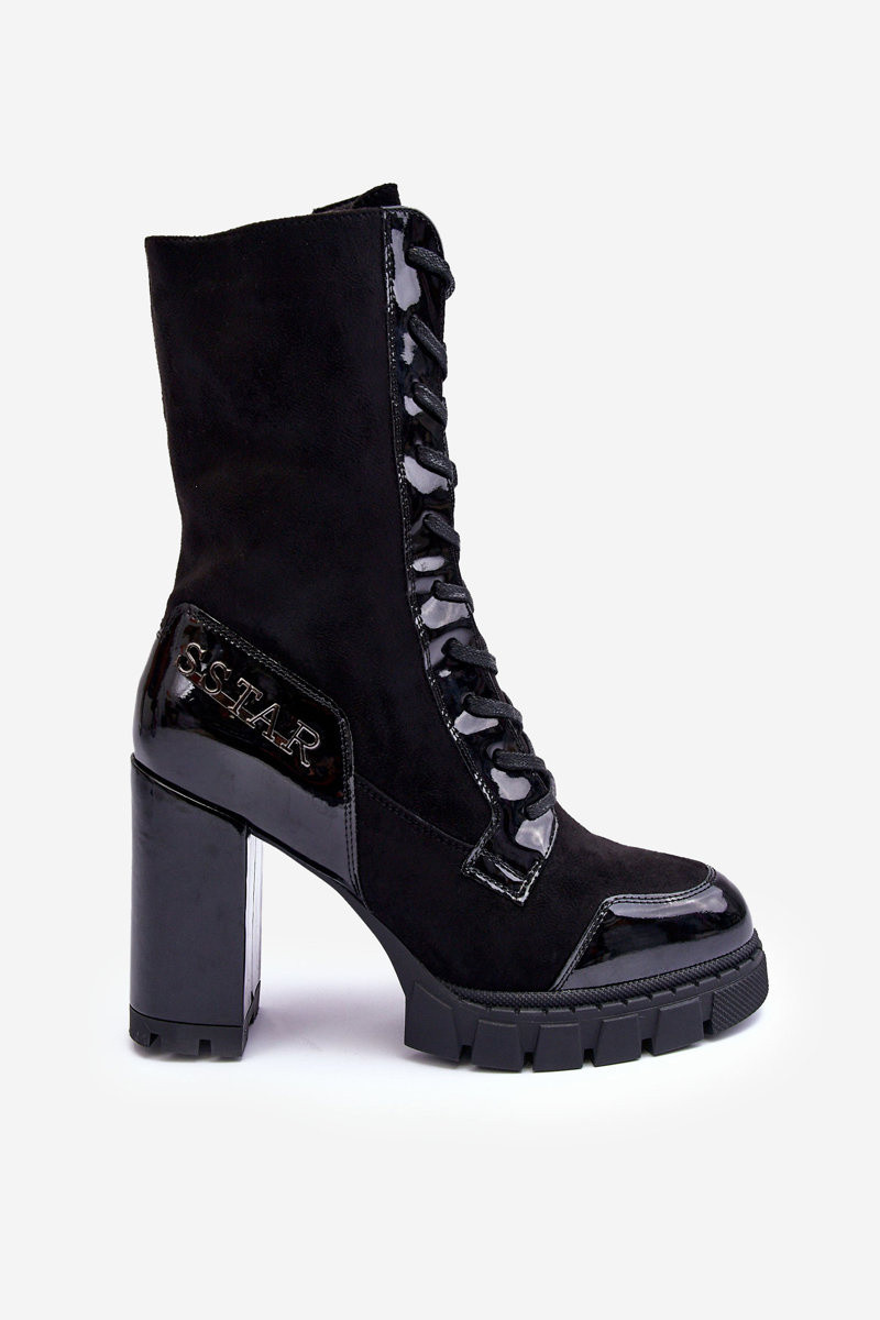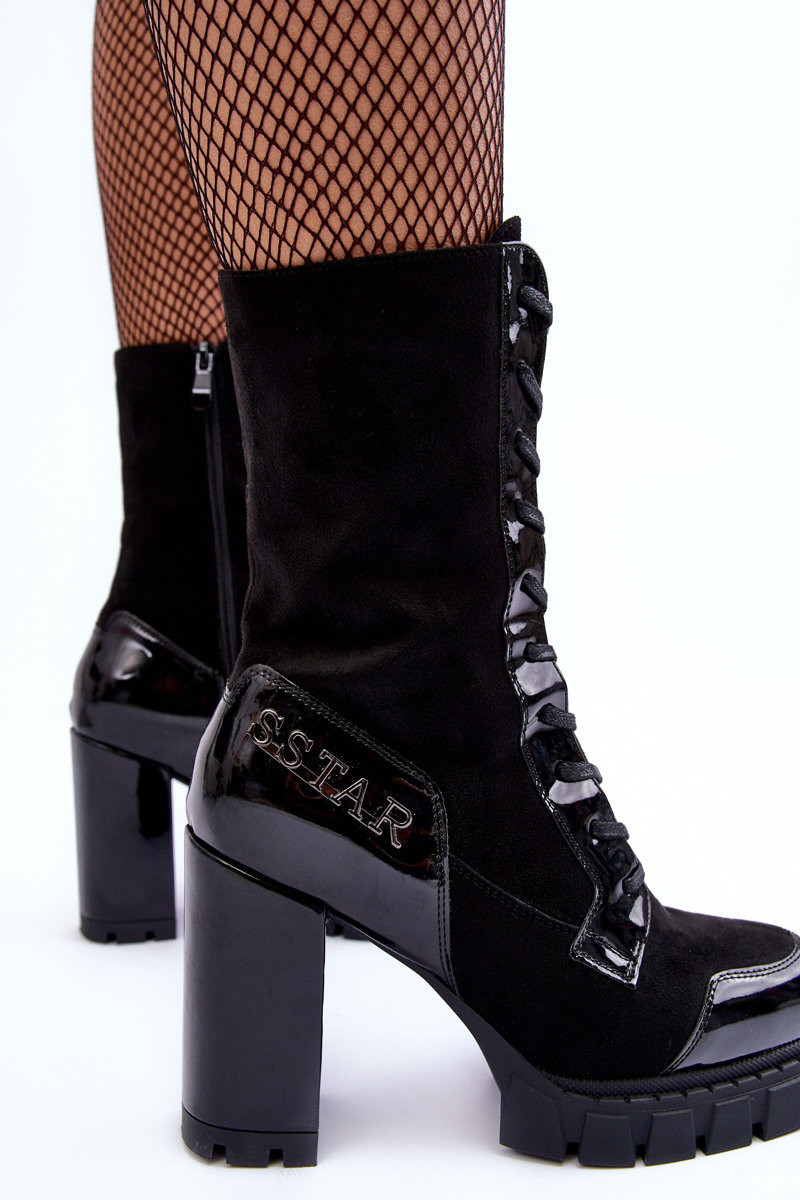 Kůže Šněrovací Boty Na Sloupku Černá model 21634913 - Boto