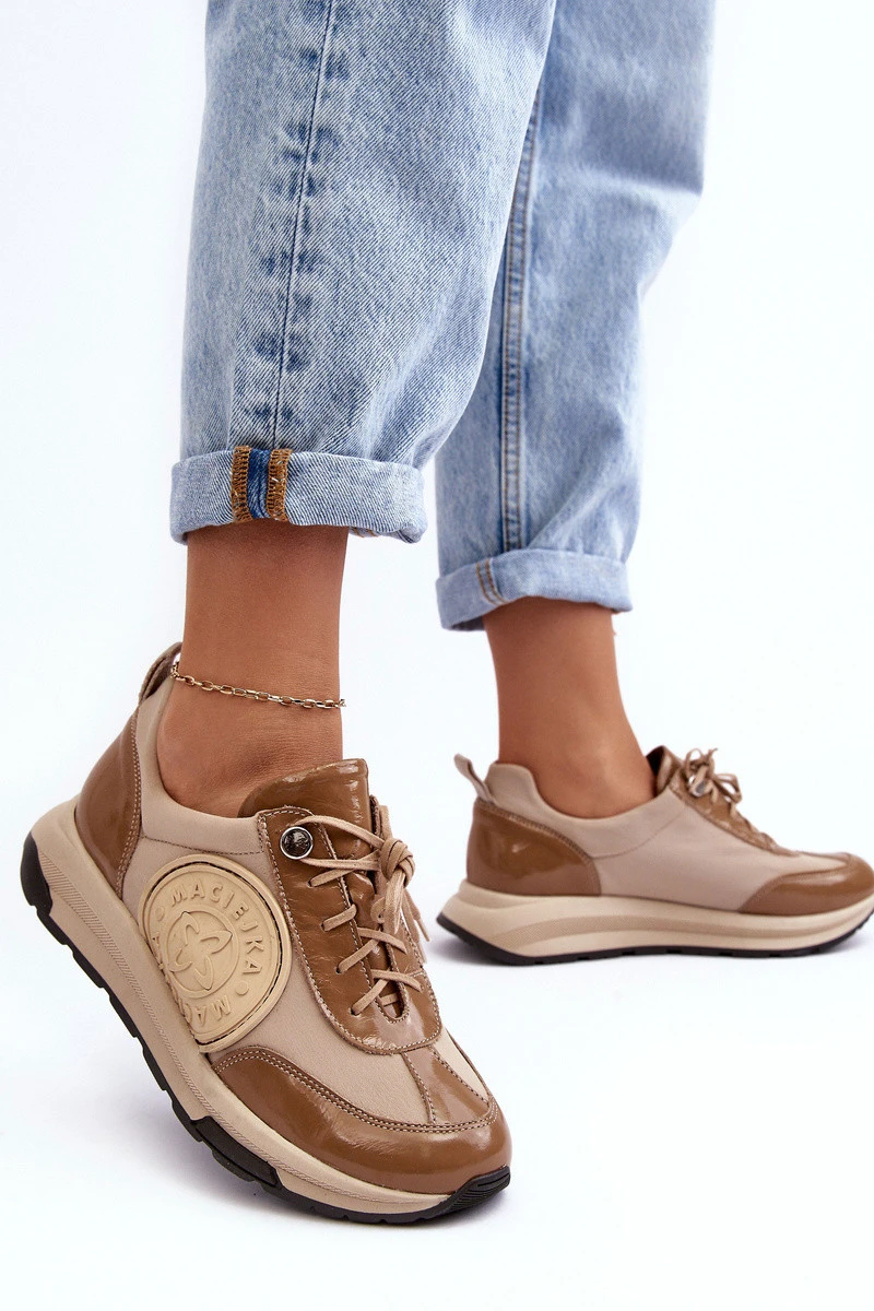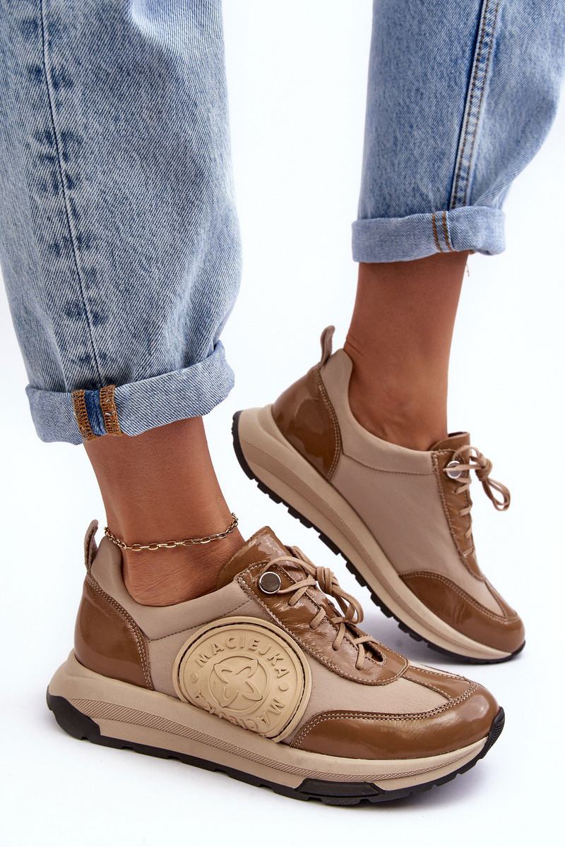 Kůže Sportovní Boty Na Platformě Maciejka 06191-04 Bežová