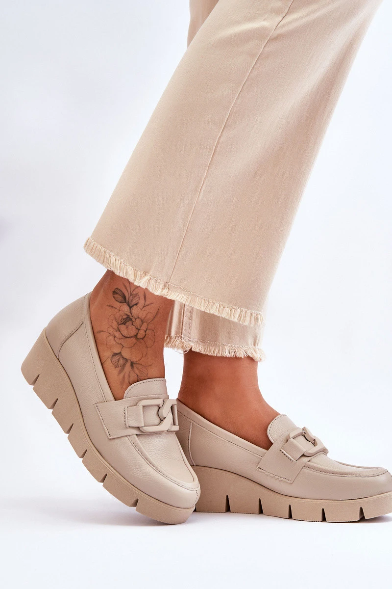 Přidání recenze k Kůže Wedge Mokasíny Béžove Felicita