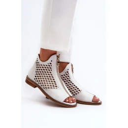Kůžené Ažurové Sandály Na Zip Bílé Zazoo 977/L
