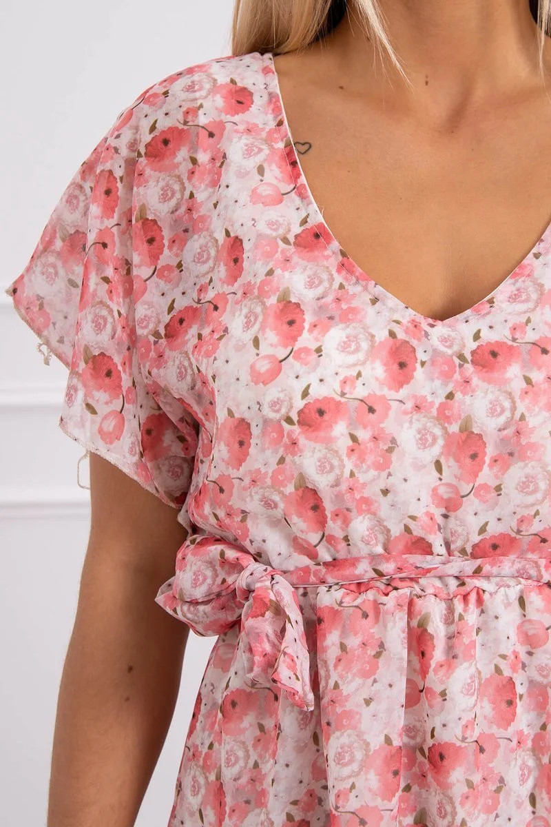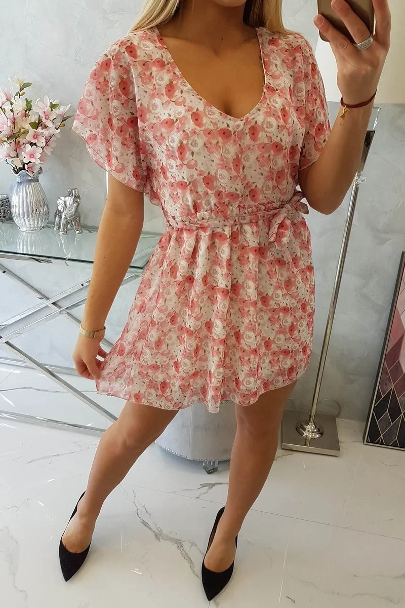 Přidání recenze k Květinové šaty s vázáním v pase, pudrově růžové