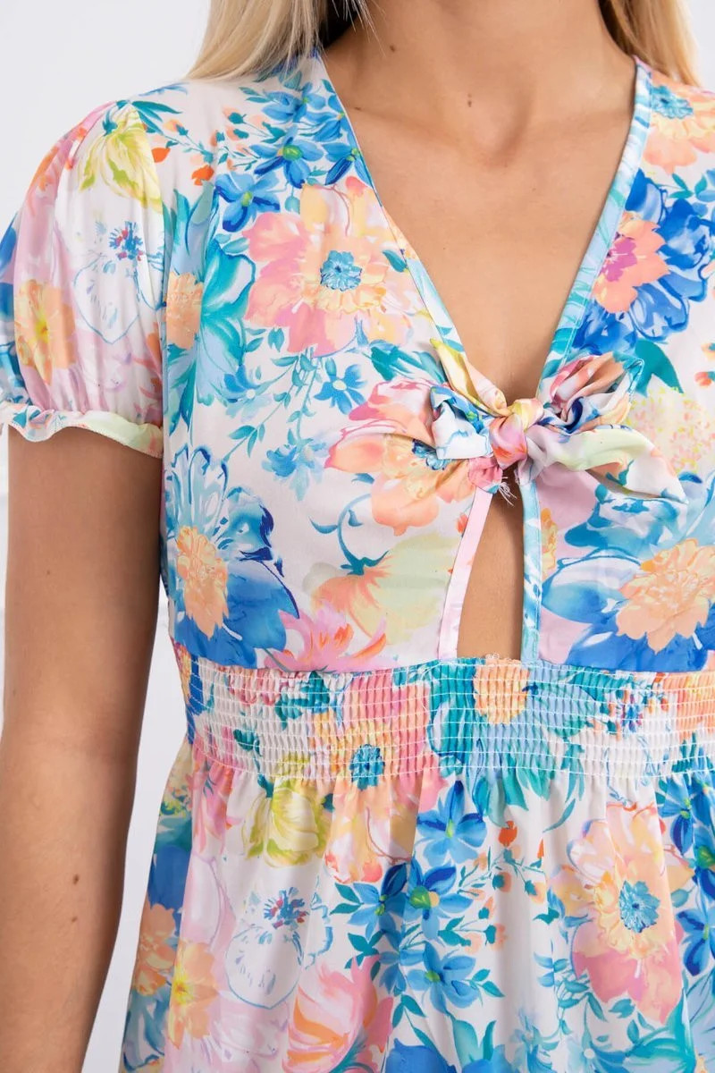 Představujeme vám pohodlné květinové šaty. Šaty vázané ve výstřihu. Šaty s volánkem a elastickým pasem. Velmi módní střih. Šaty jsou vyrobeny z vysoce kvalitního materiálu. Velikost je univerzální a vyhovuje dámám, které nosí velikost S, M nebo L.