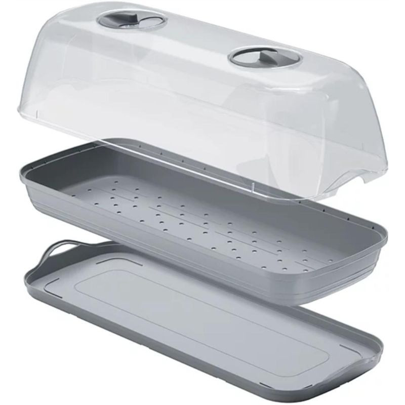 Szklarnia składa się z 3 elementów: tacki na wodę, tacki płaskiej oraz pokrywy, zapewniając kompleksowe rozwiązanie dla Twoim uprawom. Tacka na wodę odprowadzi nadmiar wilgoci, co zapobiegnie zaleganiu wody i rozwojowi pleśni, tacka płaska umożliwi rozmieszczenie doniczek z roślinami lub bezpośrednio sadzonek. Natomiast pokrywa z przezroczystego materiału zapewni optymalny dostęp światła oraz odpowiednią wentylację, wspierając zdrowy wzrost roślin i chroniąc je przed niekorzystnymi warunkami atmosferycznymi.