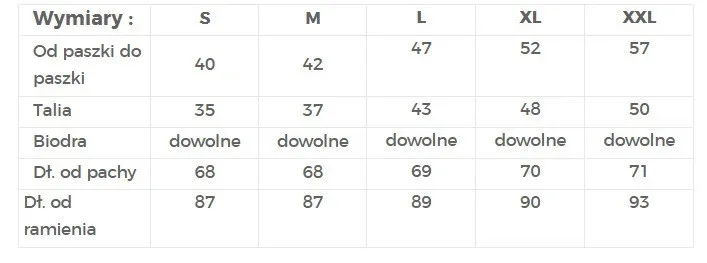 | Od podpaží k podpaží | 40 | 42 | 47 | 52 | 57 |