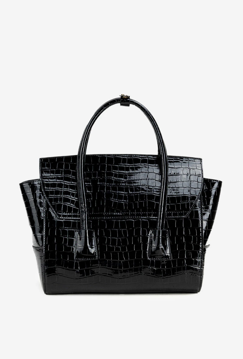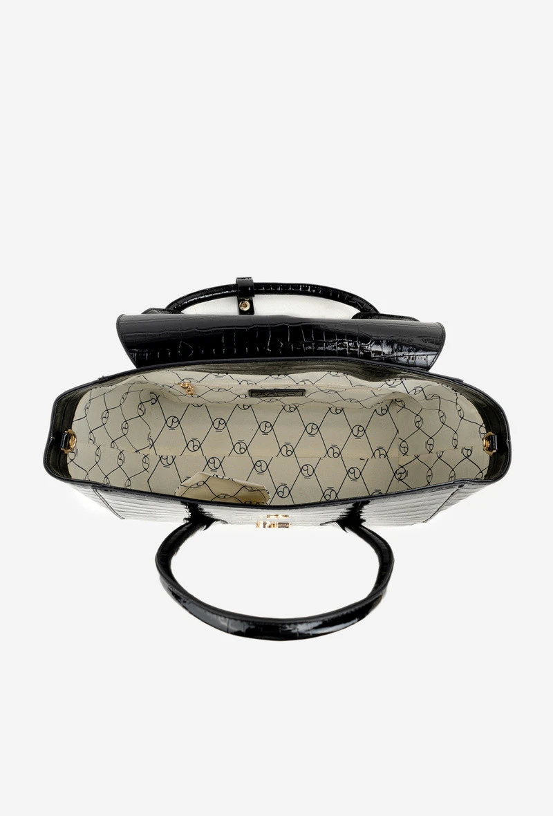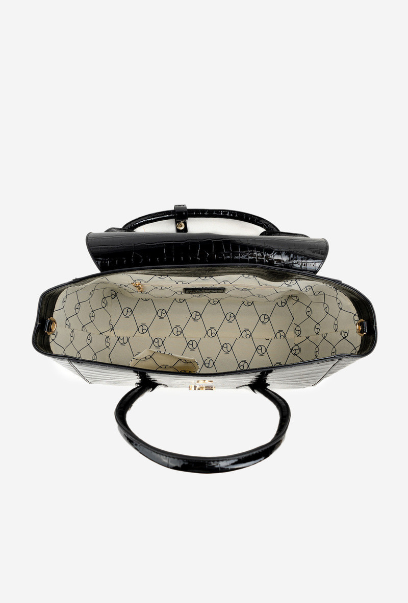 Lakovaná kabelka kufřík s rytím NOBO BAG5810-M20 Černá