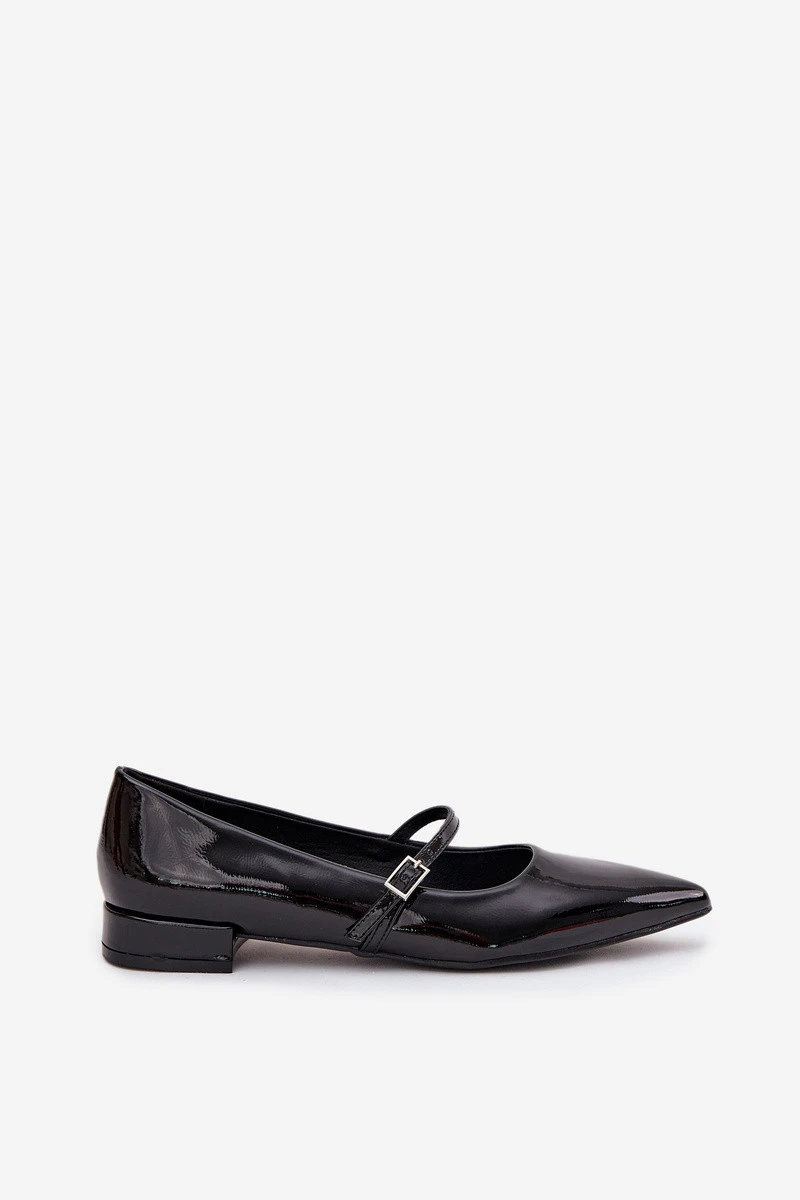 Lakované baleríny na jemném podpatku s páskem Černé Isvella