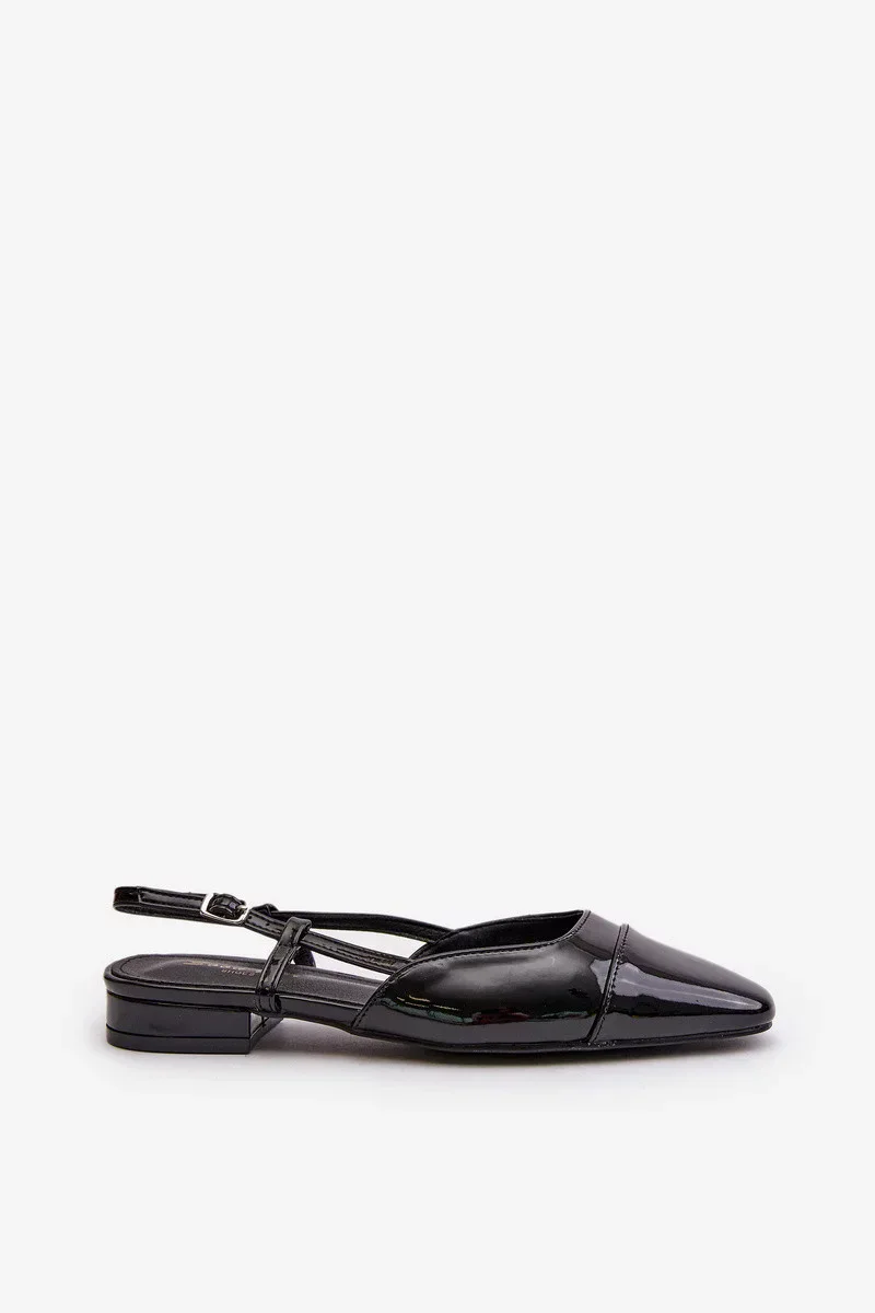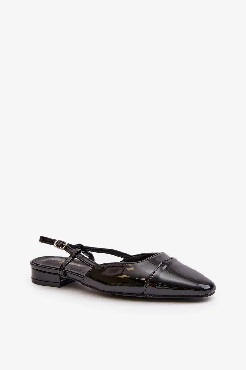 Lakované baleríny na nízkém podpatku s otevřenou patou černé Kairael