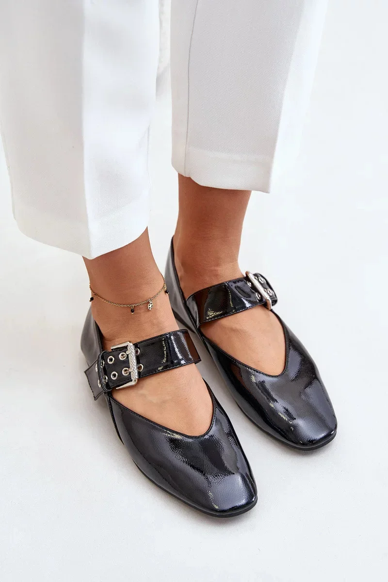 Lakované Baleríny S Páskem Černé Azirae