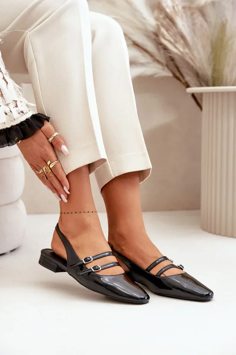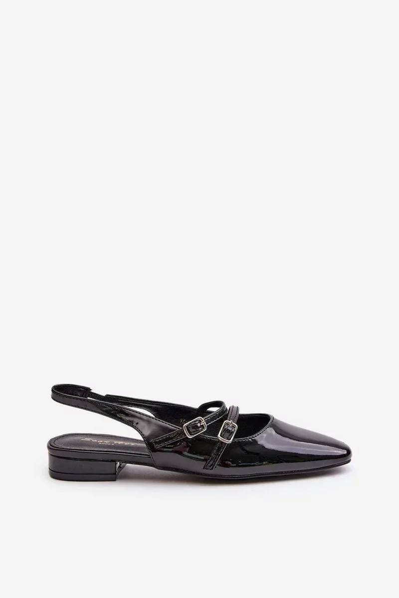 Lakované Baleríny S Pásky Na Nízkém Podpatku Černé Bialettia