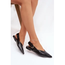 Dámské baleríny vyrobené z ekologické kůže. Štíhlé, špičaté špičky jim dodávají lehkost a podtrhují ženský styl, zatímco plochá podrážka zajišťuje pohodlí při chůzi. Šev na přední straně přidává jemný charakter, zatímco zadní pás s ozdobnou sponou slouží jak k regulaci, tak jako dekorativní detail. Tento model skvěle doplní jak casualové, tak elegantní outfity. Při výběru velikosti prosím řiďte se tabulkou velikostí. Při výběru velikosti se řiďte tabulkou velikostí.