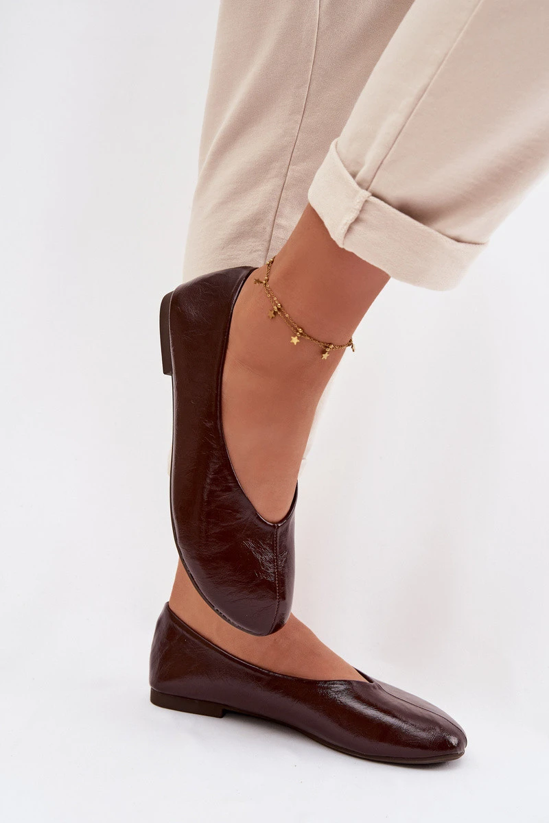 Lakované Baleríny z Eko Kůže Čokoládové Selanora