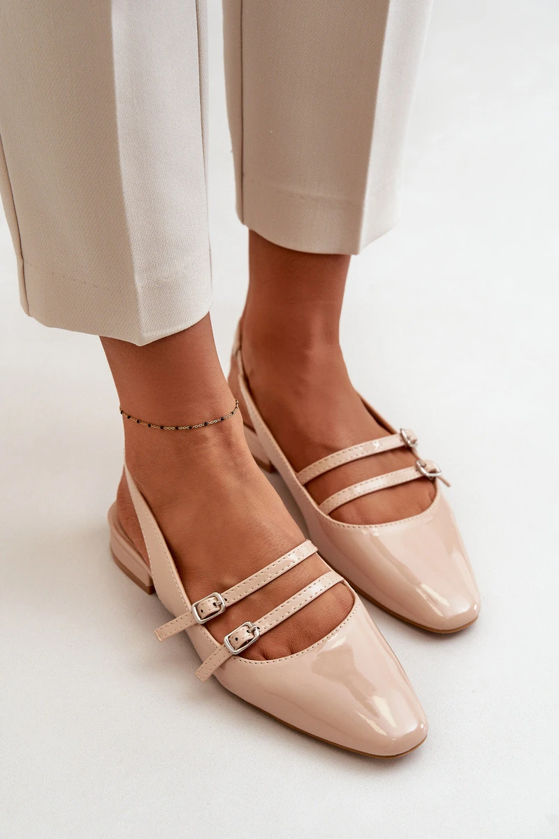 Lakované Baletky S Pásky Na Nízkém Podpatku Béžové model 21670510 - Boto
