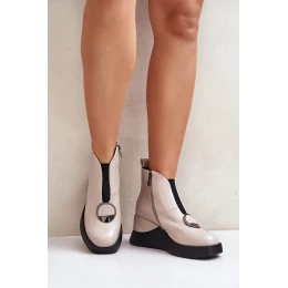 Elegantní dámské botky na platformě a klínu. Vyrobeny z eko kůže. Zapínání na zip na boku. V přední části elastická vsadka a ozdoba. Špičky jsou zaoblené. Uvnitř zatepleno obuvnickou vlnou. Tento model určitě doplní mnoho podzimních a zimních stylizací! Při výběru velikosti se řiďte tabulkou velikostí.
