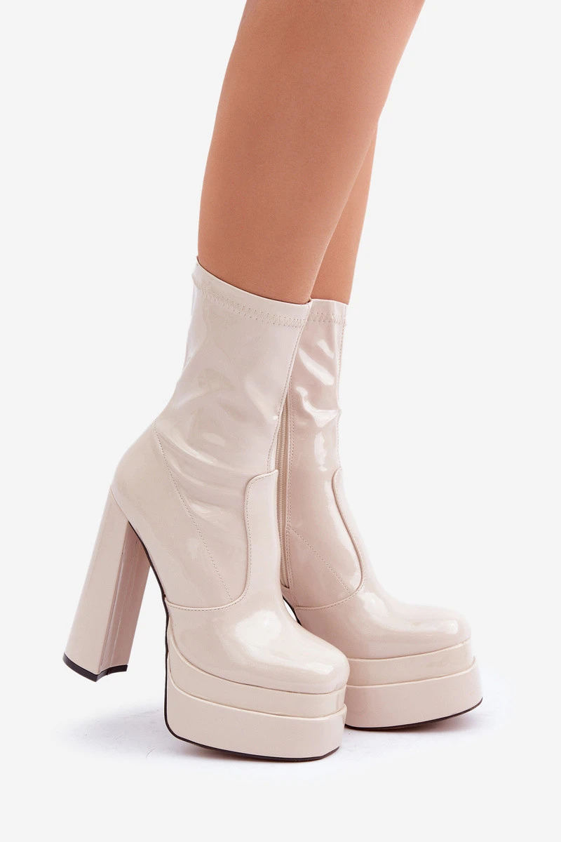 Lakované Boty Na Platformě A Vysokém Podpatku Béžové Lotisha