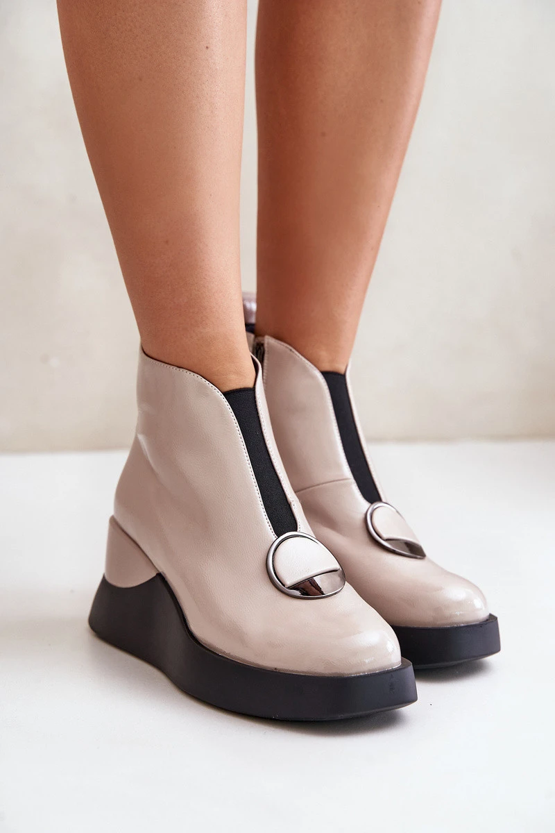 Lakované Boty Na Zateplené D&A Béžové model 21671901 - S.Barski