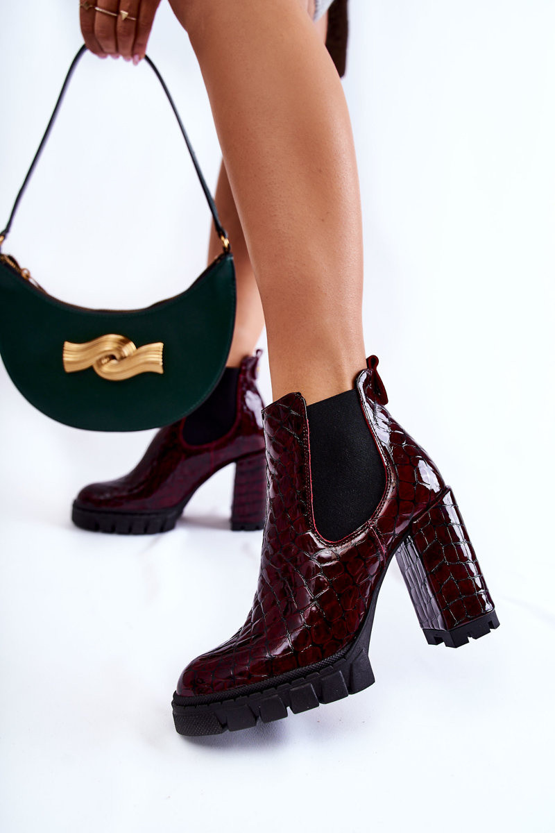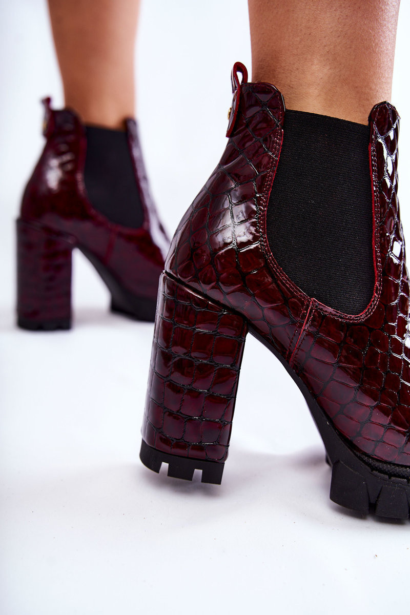Lakované boty vzor na sloupku Burgundy model 21600620 - Boto